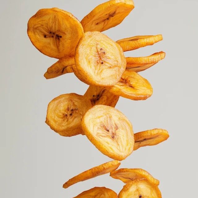 Crisp and flavorful banana chips made from carefully selected bananas, available in salted or spiced variants.