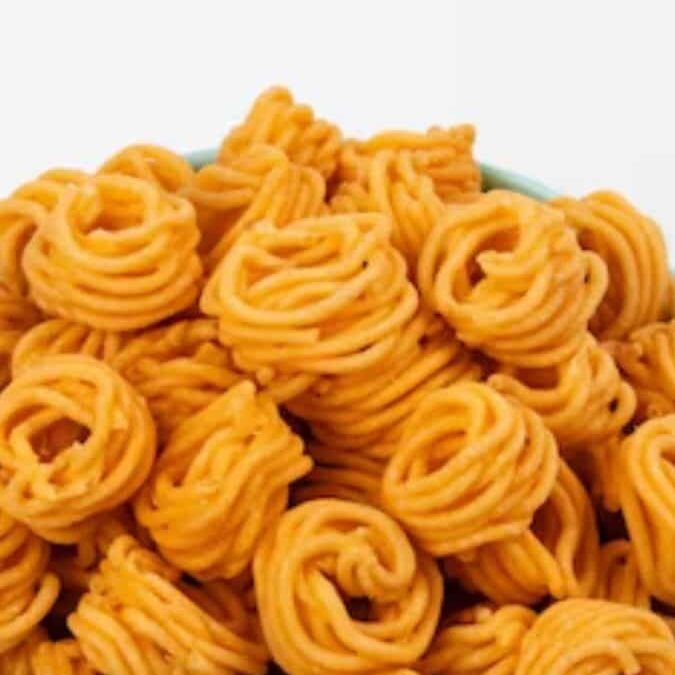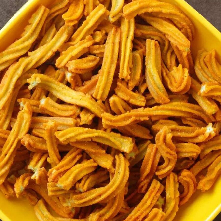 Traditional South Indian ribbon-shaped snacks made from rice and gram flour, fried to crispy perfection with mild spices.