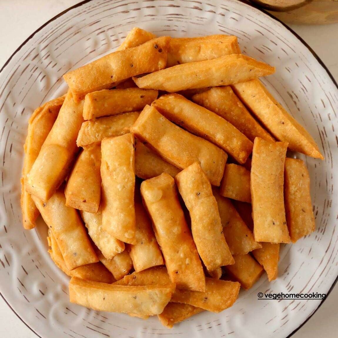 Traditional deep-fried wheat snacks infused with jeera (cumin), known for their crisp texture and authentic taste.