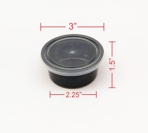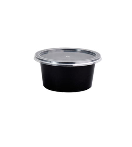 Combine capacity and high-end style with the 100 ml Black Round Container. This larger black dip cup is perfect for premium side dishes, rich dipping sauces, or even a small portion of soup or gravy. The opaque black material provides a sophisticated, discrete look that separates it from standard clear packaging. It forms a reliable seal when used with its matching snap-on lid (not included).