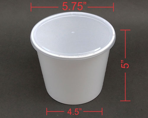 (Top Dia) 5.75 X (Bottom Dia) 4.5 X (Height) 5 Inches. White Base round 1500 ml container with Modular round seal Airtight lid. Convenient for transit of Full portion Gravy, Biryani, Noodles, Thukpas etc. Micro oven safe Polypropylene material Food safe plastic Which keeps food healthy for long. Easy to store as the product is Stackable, saves space so kitchen looks organized and attractive virgin plastic excellent finish top lids allows to see contents and check food quantities