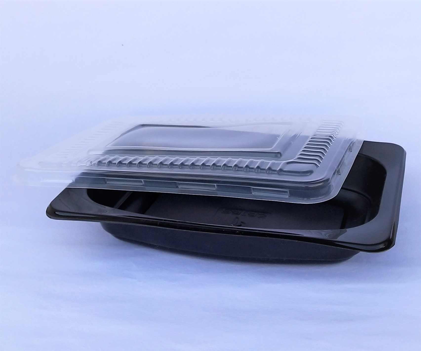 30 MM (450ml) Black Pasta Tray with Lid Top-7.5×5.5, Base-6×4.5, Height-1 Inches . It comes with optimum quality & finish. it is Stackable & easy in Storage. Made of Polypropylene, Microwave safe (After removing Lid)and reusable. This can be used for Multicuisine food Takeaways. Please note container is not leakproof with lid & not for gravy, Liquid items & only for dry items.