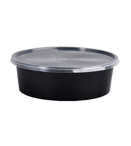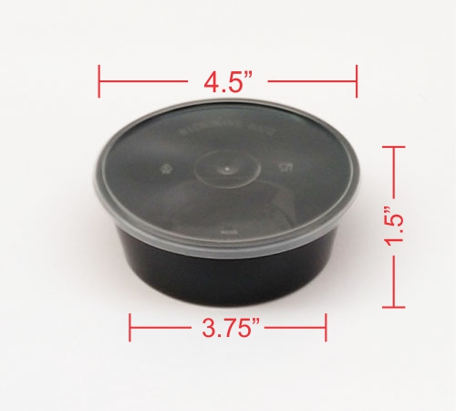 (Top Dia) 4.5x (Bottom Dia) 3.75 X (Height) 1.5 Inches Black round 300 ml container with Modular round seal Airtight lid used for keeping semi Half portion gravy and dry items . Micro oven/Freezer safe ,Leak proof, sturdy. Polypropylene plastic food safe material that keeps food healthy for long time. Easy to store as the product is Stackable, saves space so kitchen looks organized and attractive virgin plastic excellent finish top lids allows to see contents and check food quantities