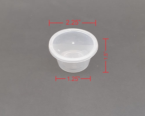 Size/Capacity: 50 ml (approx. 1.7 oz); an essential small plastic container for every menu.